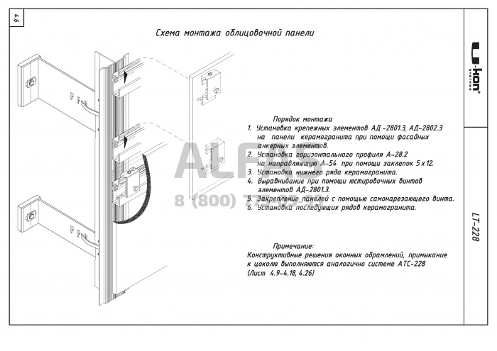 Фасадная система U-kon LT-228 под Фасадный керамогранит