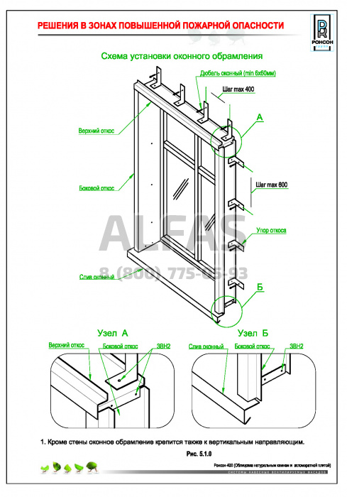 Система НВФ “РОНСОН-400" для навеса натурального камня обладает рядом преимуществ: