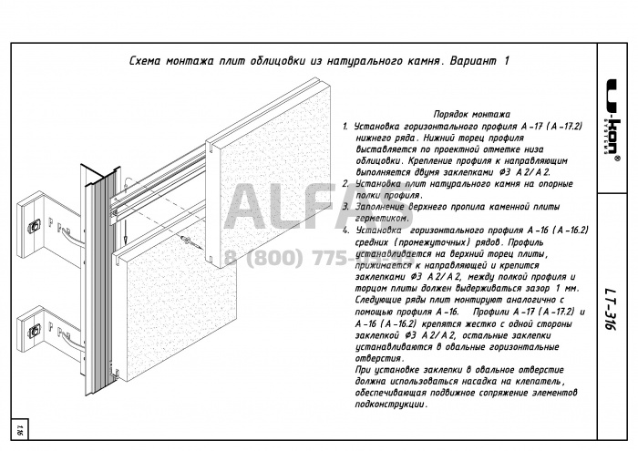 Фасадная система U-kon LT-316 под Натуральный камень